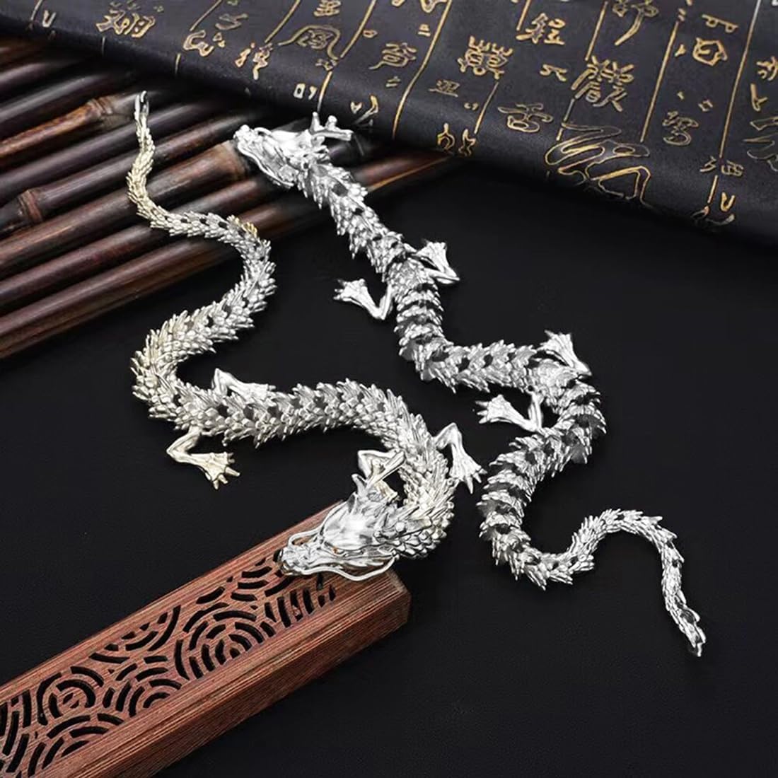 13.8 Inch Chinese Feng Shui Dragon Statue Sculpture Figurines Feng Shui Decor Home Office Desktop Decoration Good Lucky Gifts Silver