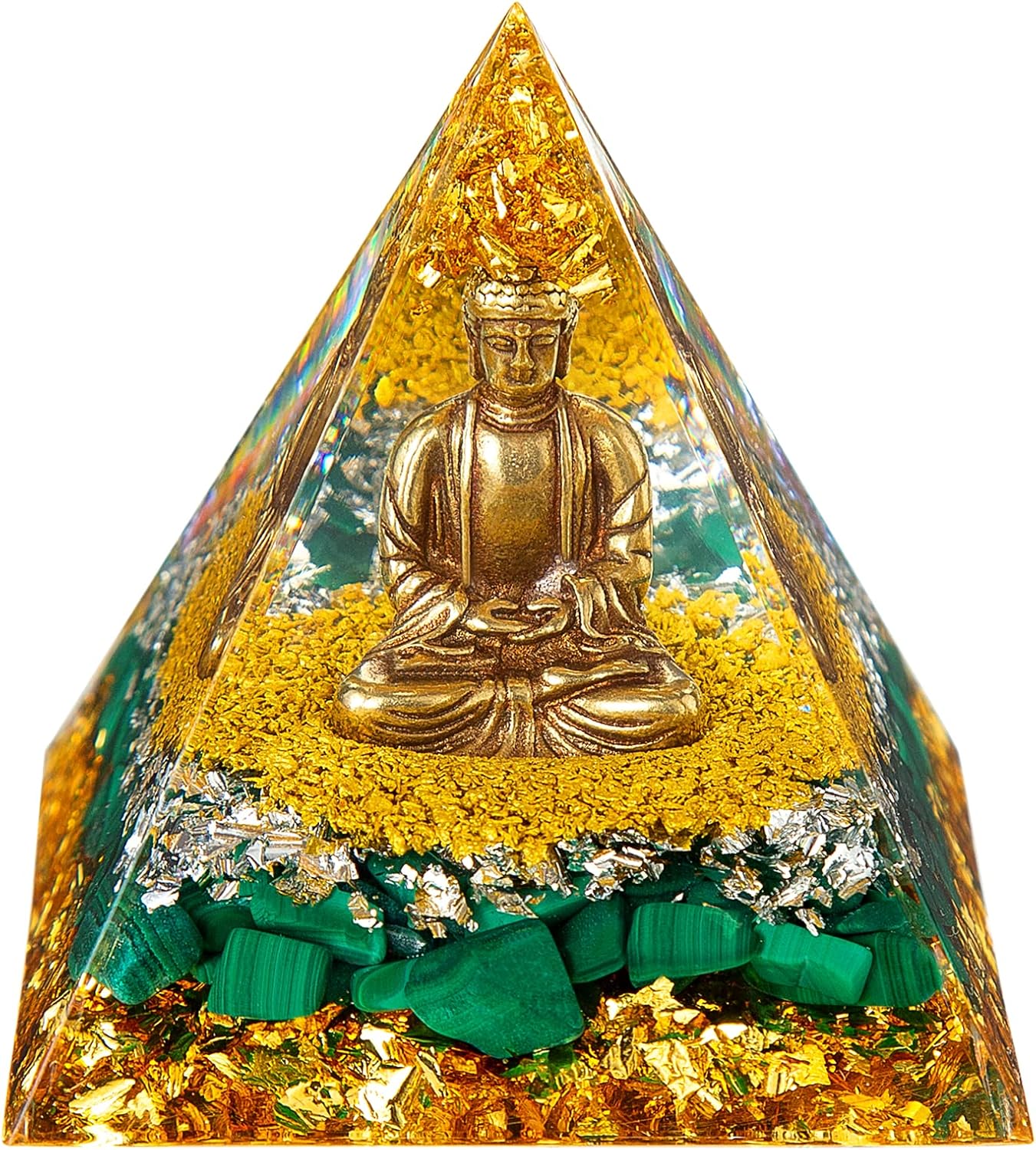 Little Buddha Statue in Healing Crystal Organite Pyramid - Malachite with Baby Buddha Figurine, Reiki Chakra Meditation Buddha Decor