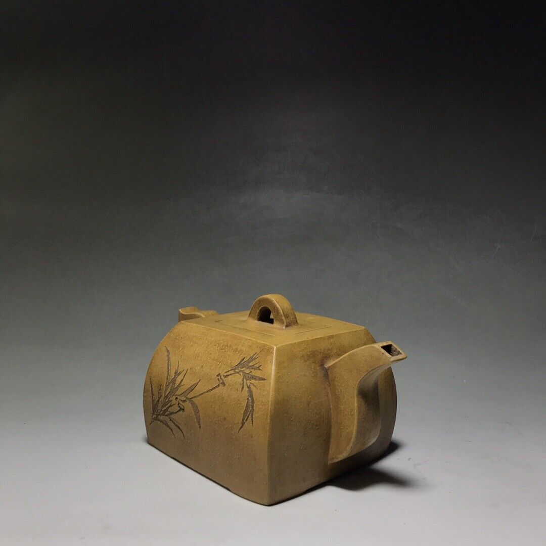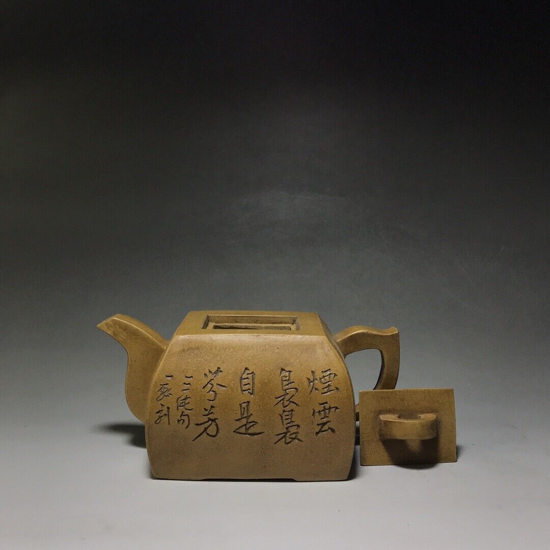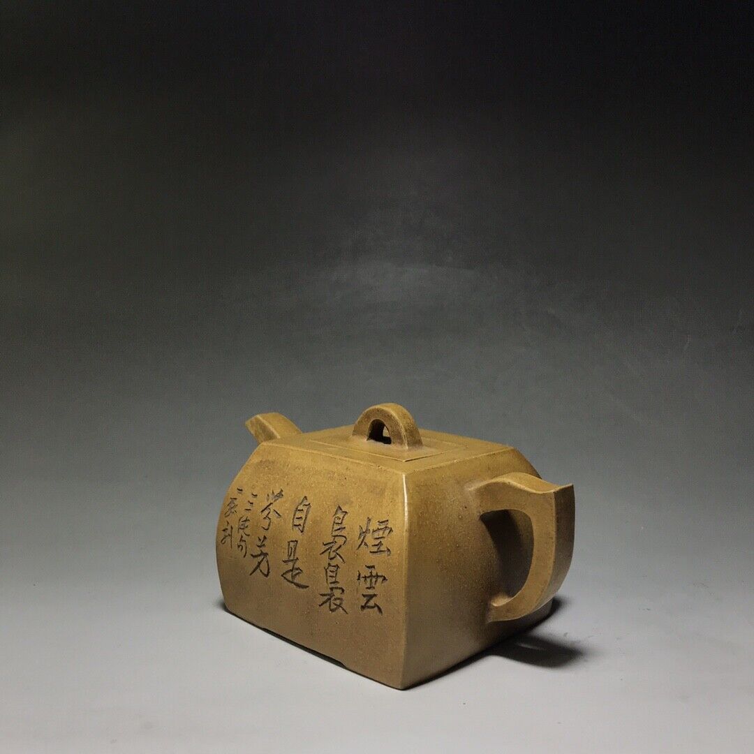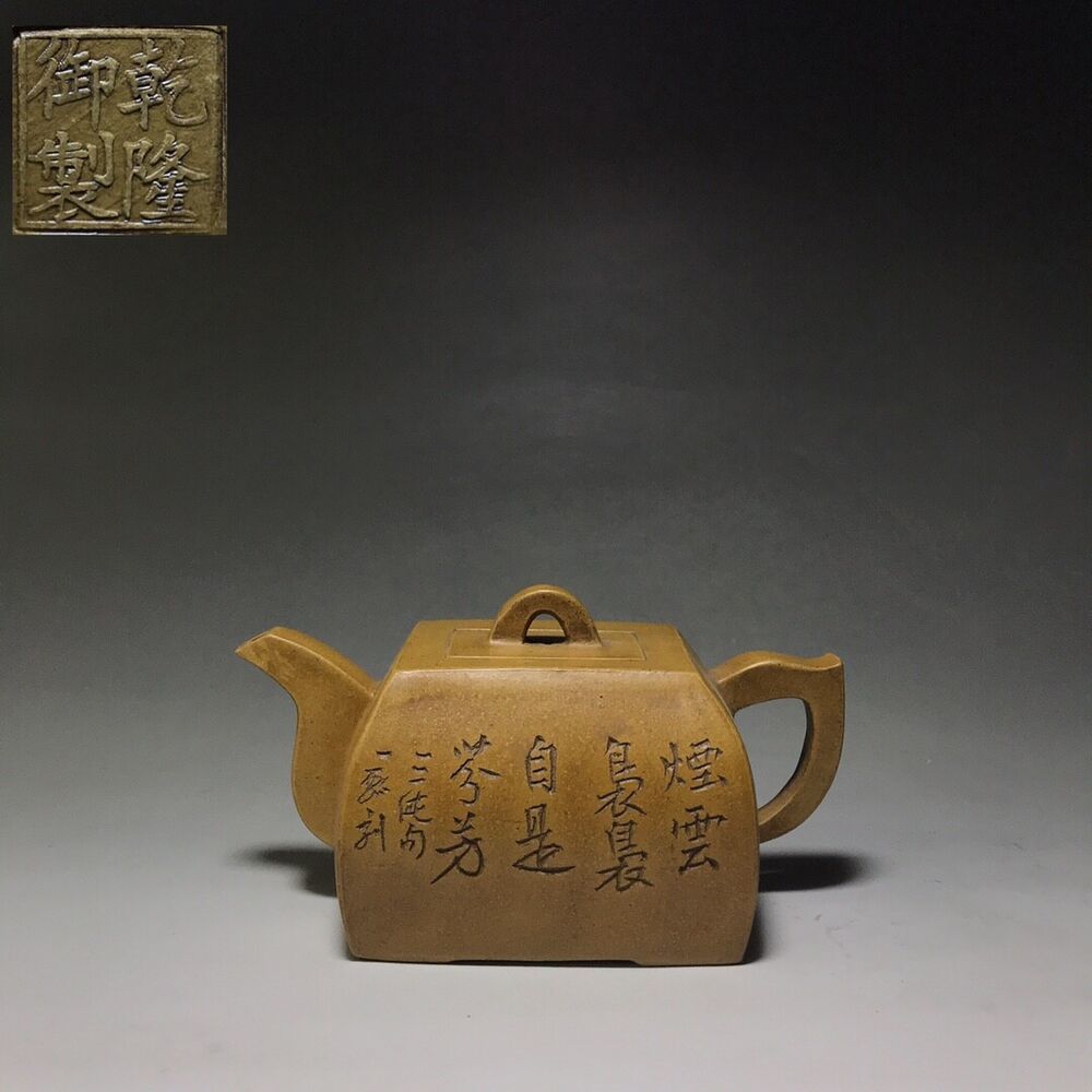 Chinese Yixing Zisha Clay Handmade Exquisite Teapot (鼓腹四方壶 底款:乾隆御制)