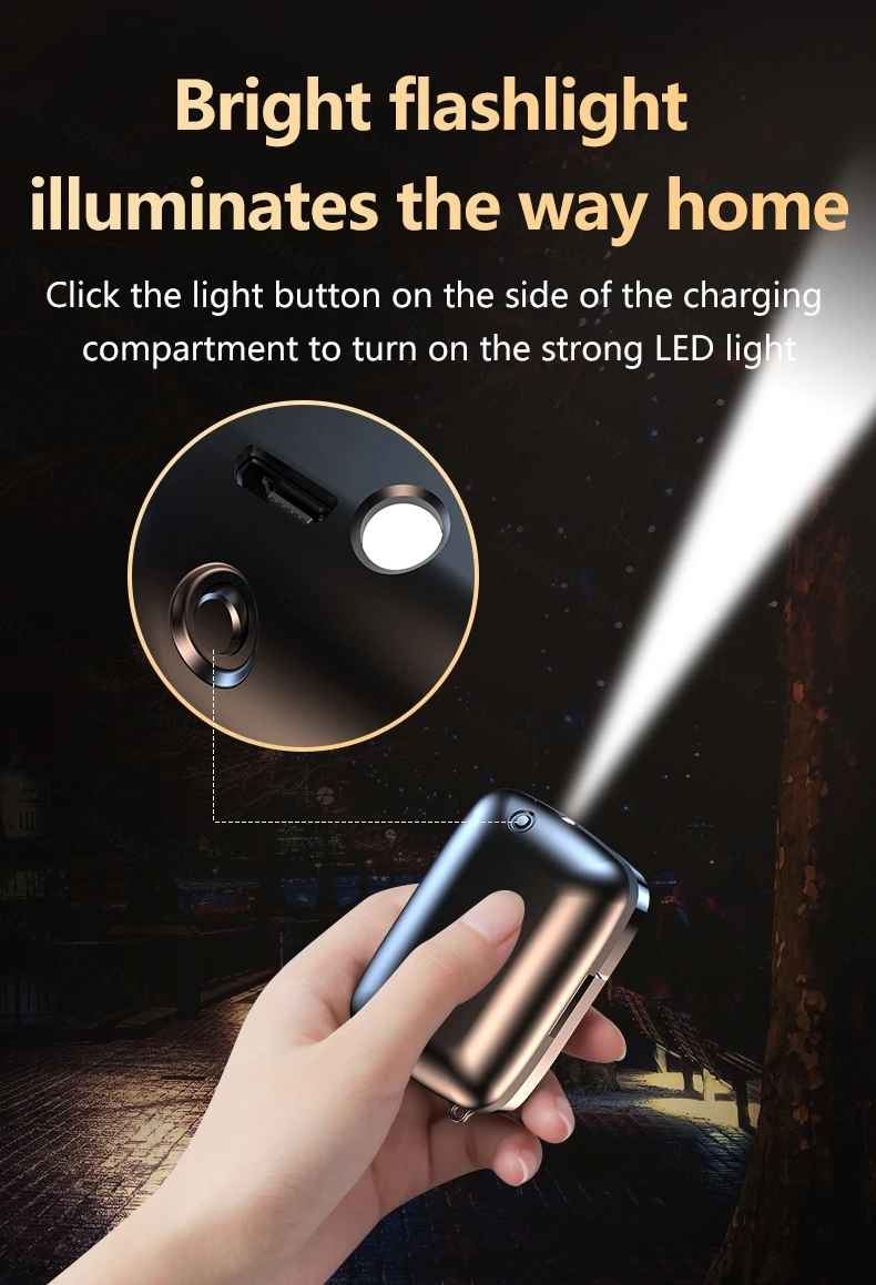 1.Portable charge box , HD mirror screen surface, with bright led flashlight .