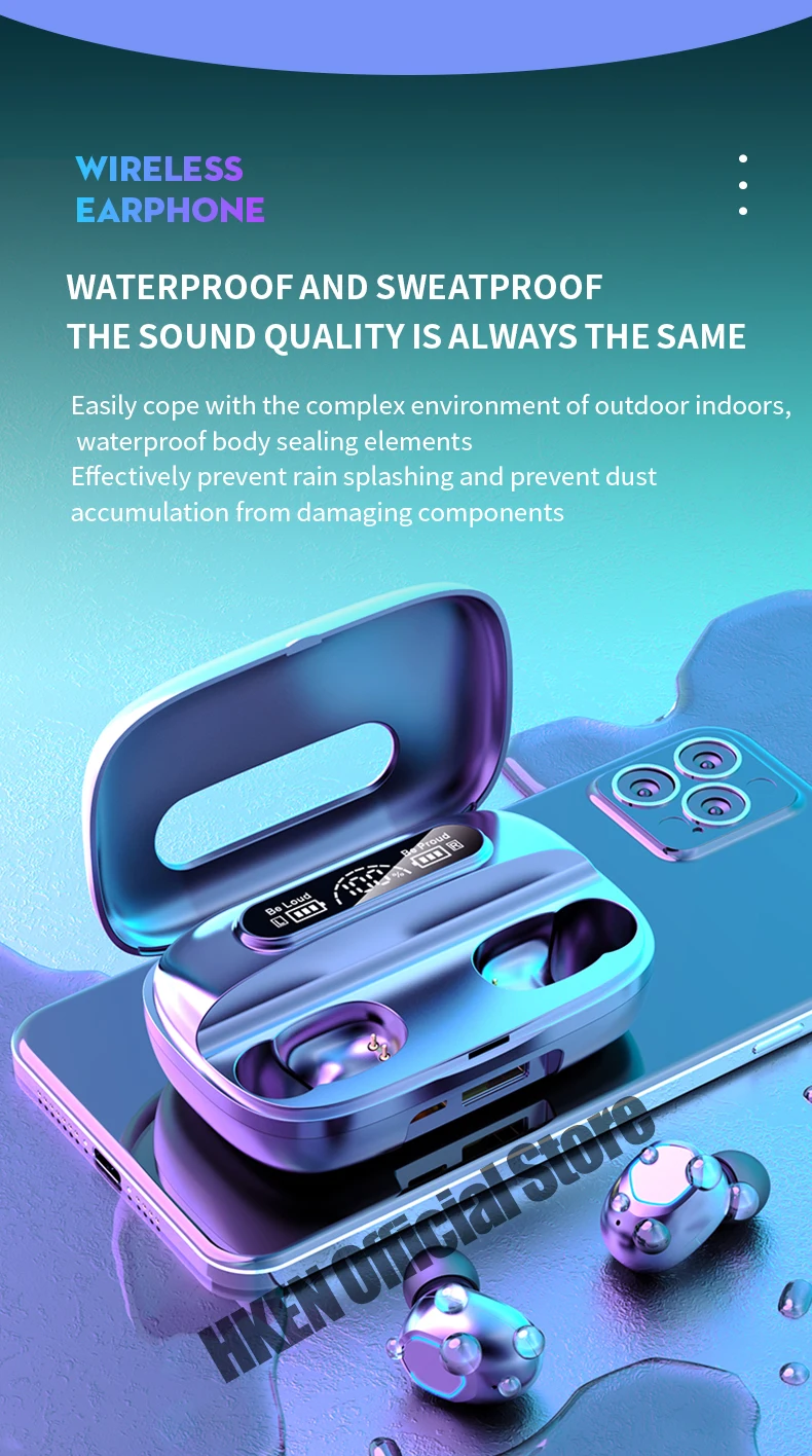 TWS Earbuds Bluetooth Earphones Hifi Sound Wireless Headphones Running Sports Headsets with mic for All Smart Phone