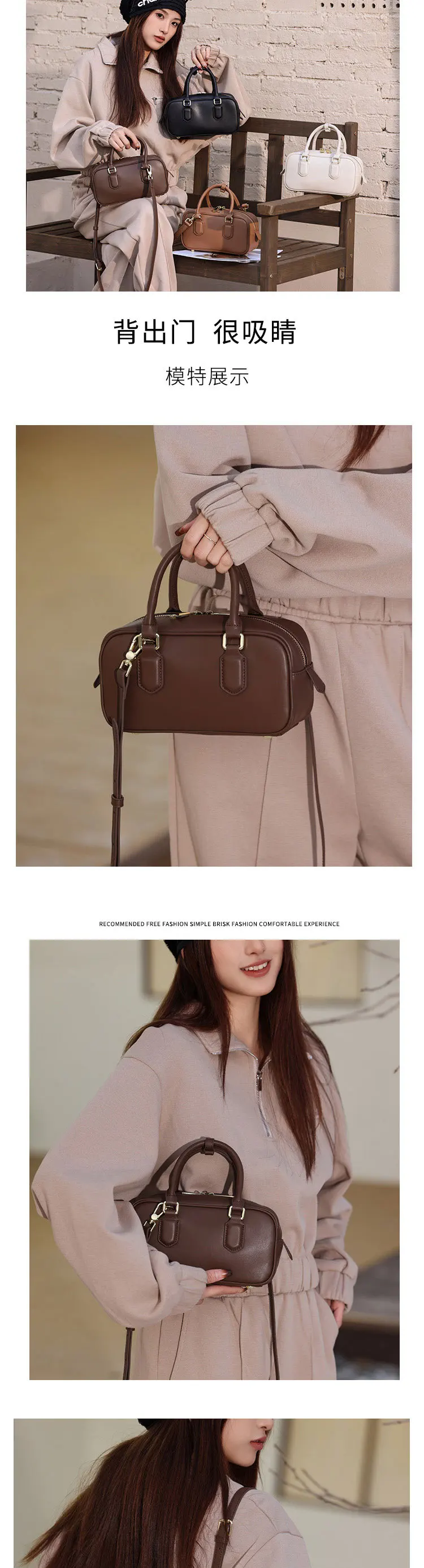 Boston Bowling Pillow Package 2023 Luxury Handbag Women's Genuine Leather Shoulder Crossbody Bag