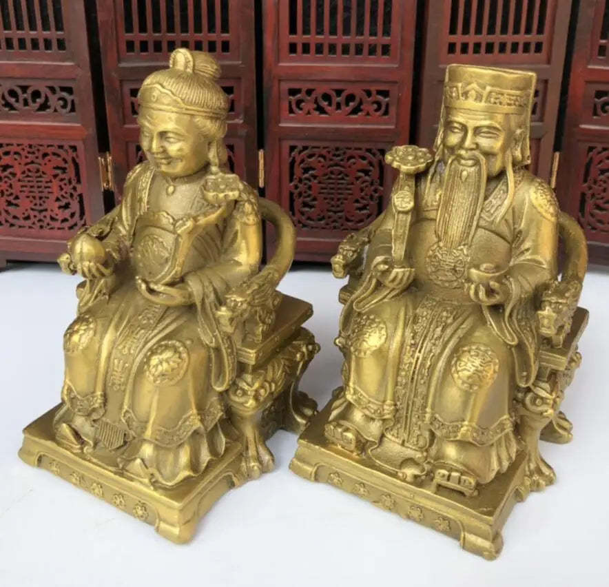 China brass land god crafts statue A pair