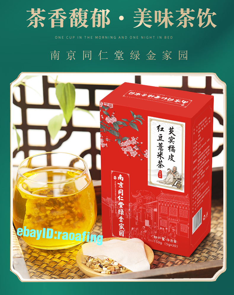 Chinese Herbal南京同仁堂橘皮红豆薏米茶养生泡茶健脾益胃,补肺清热,降血脂,消除皱纹、白嫩肌肤