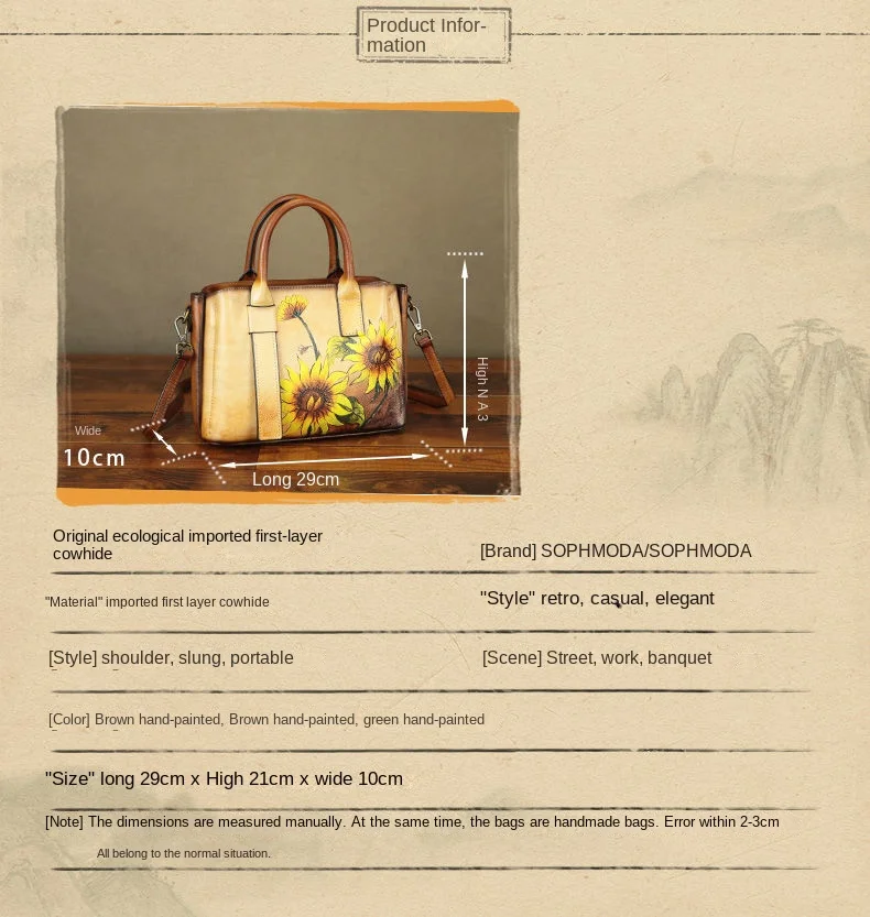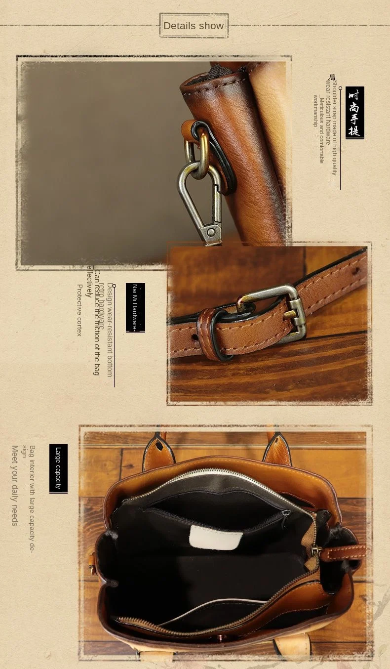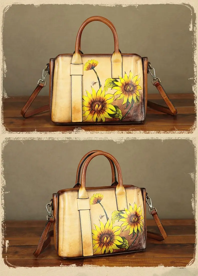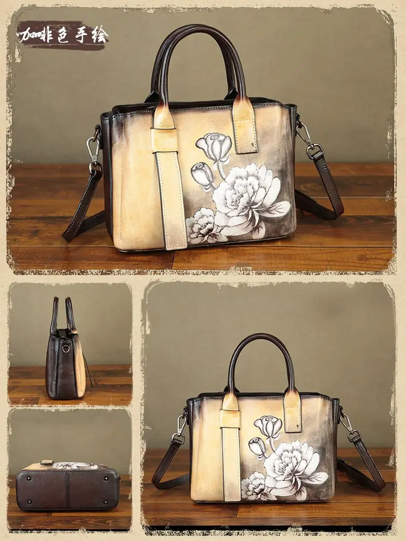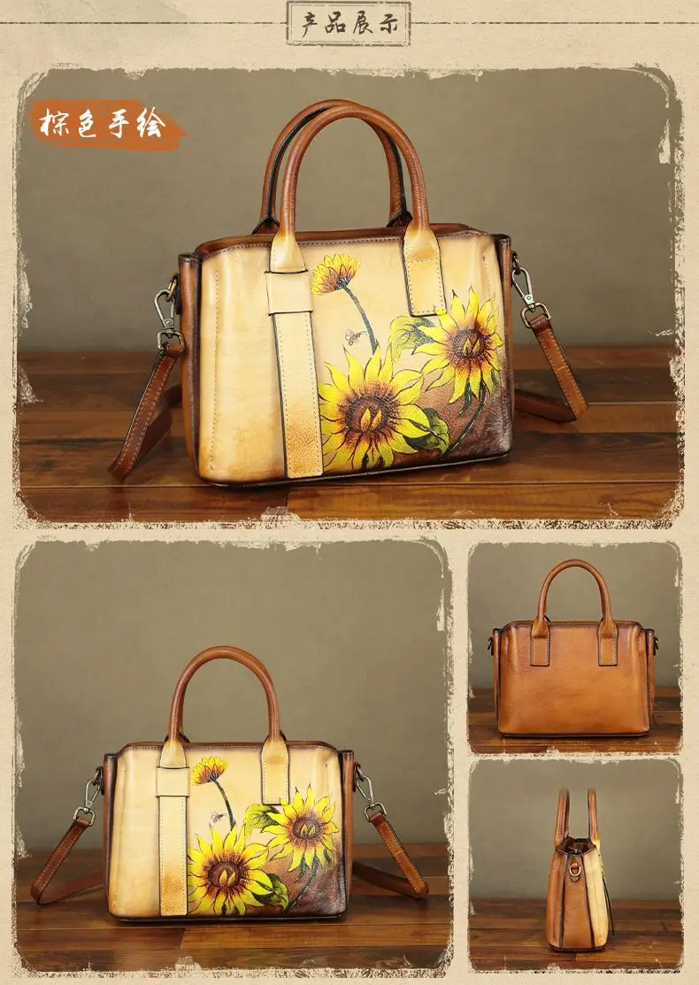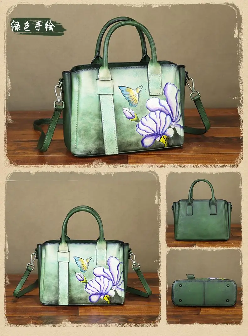 Cowhide Handmade Leather Women's Leather Bag Women's Crossbody Bag Women's Shoulder Bag Women's Handbag 2024 New Hand-painted