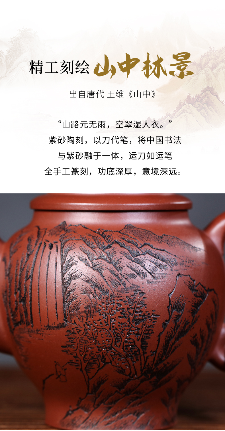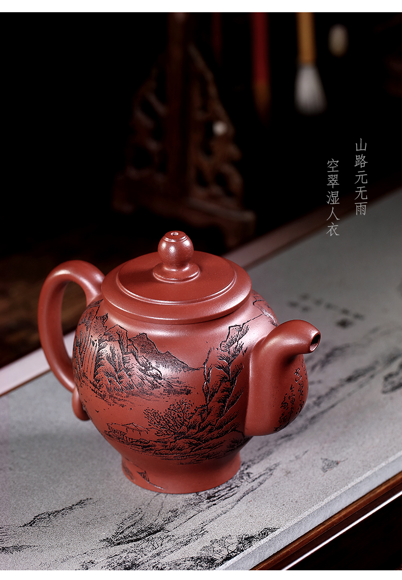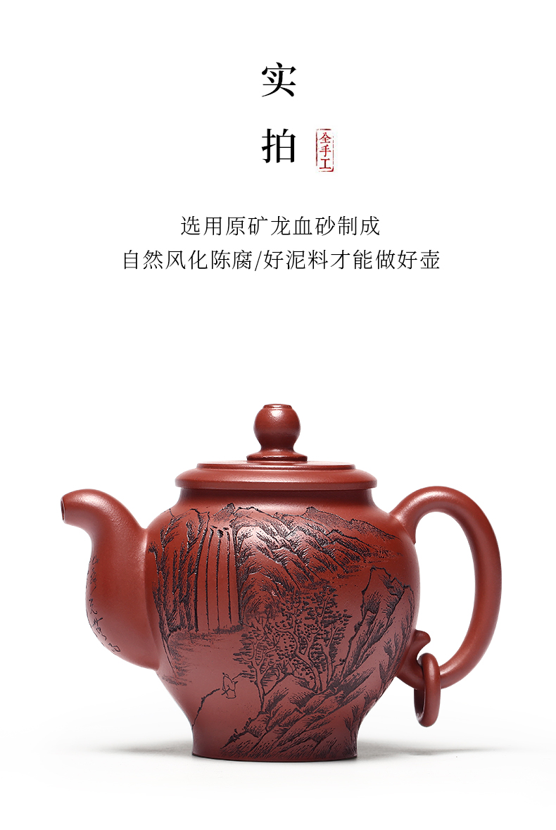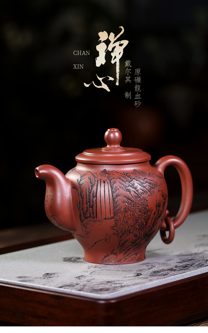 Yixing Purple Clay Pot Carved Teaware Pot Raw Ore Dragon Blood Sand Teapot Zen