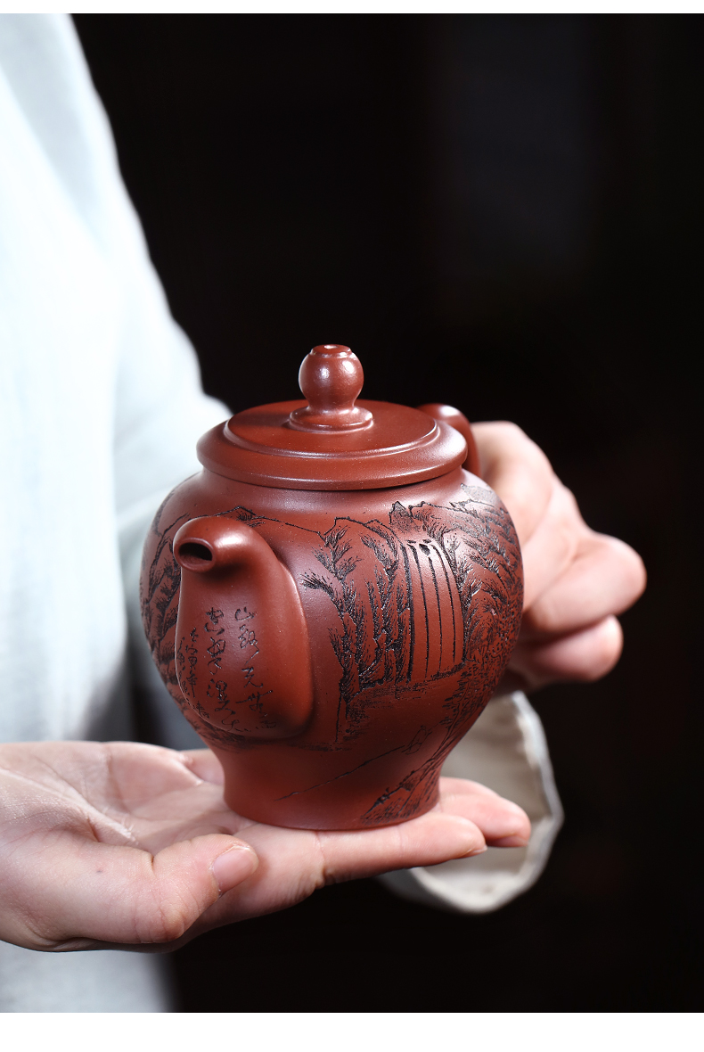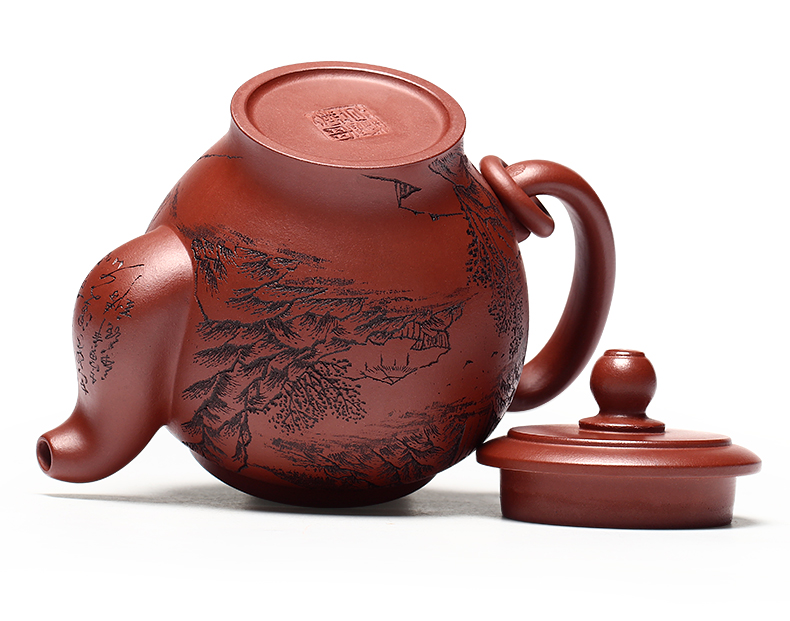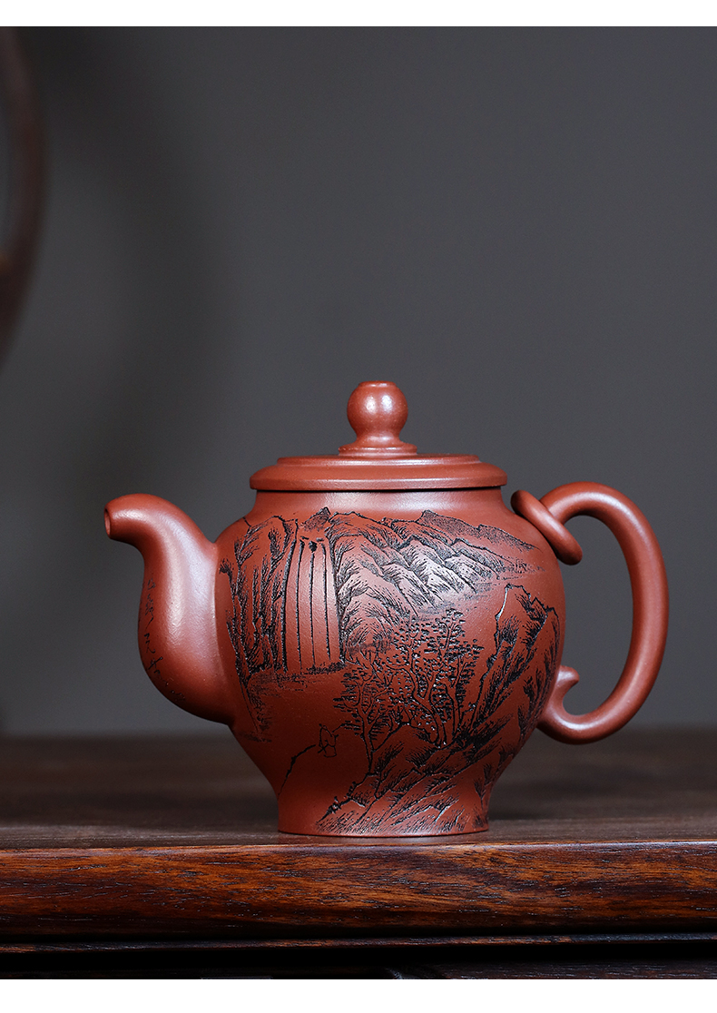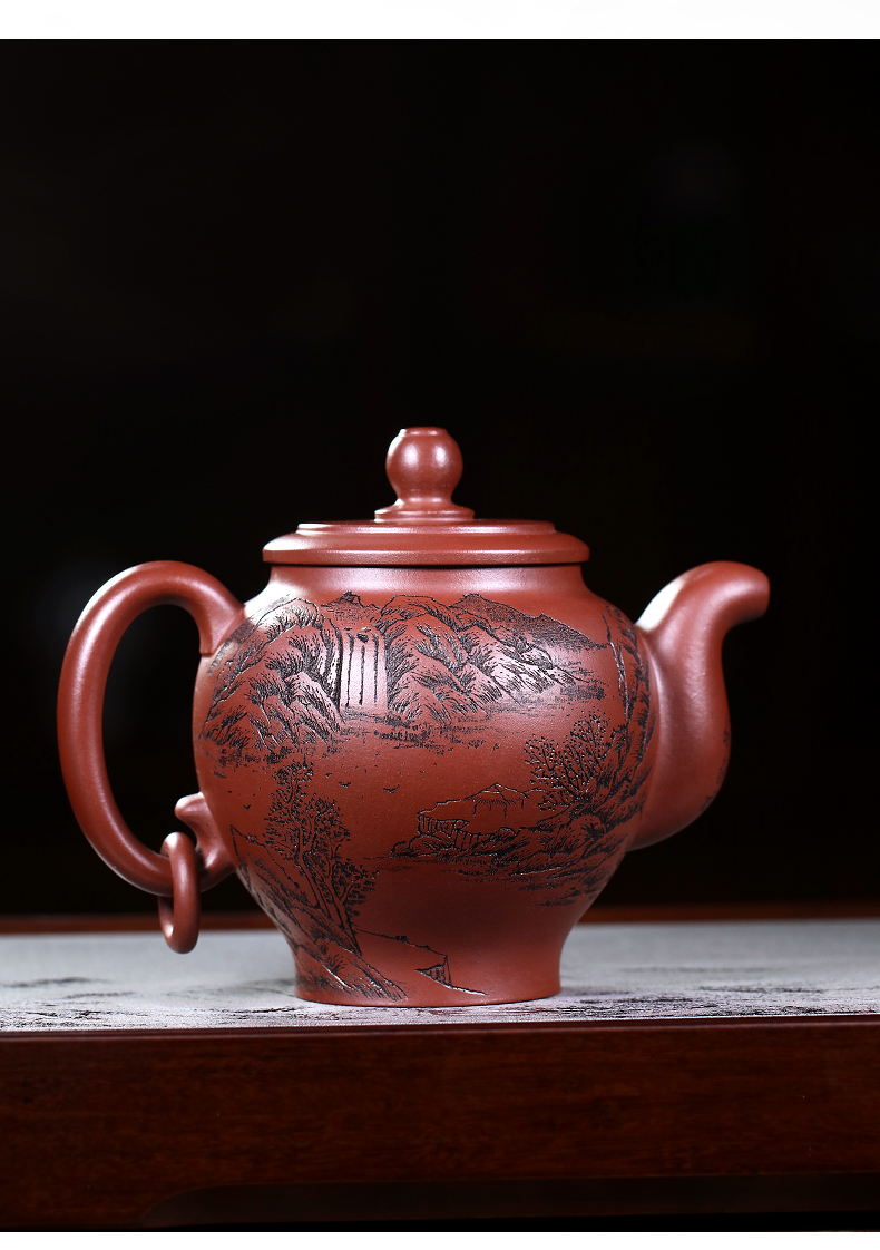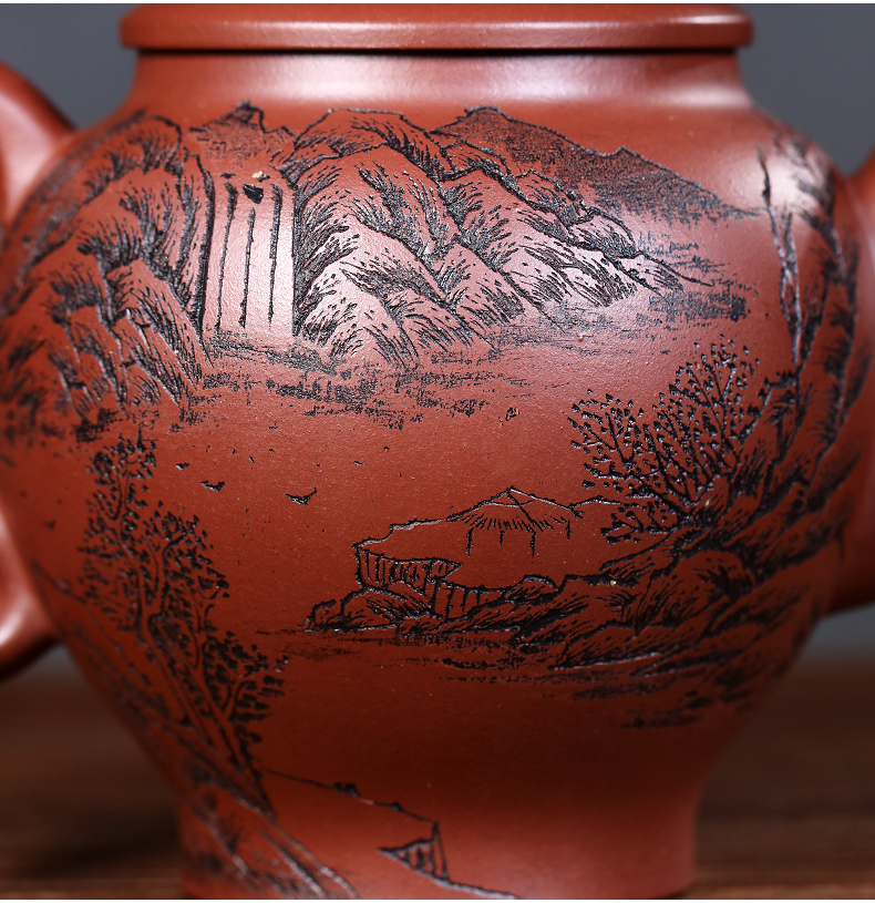 Yixing Purple Clay Pot Carved Teaware Pot Raw Ore Dragon Blood Sand Teapot Zen